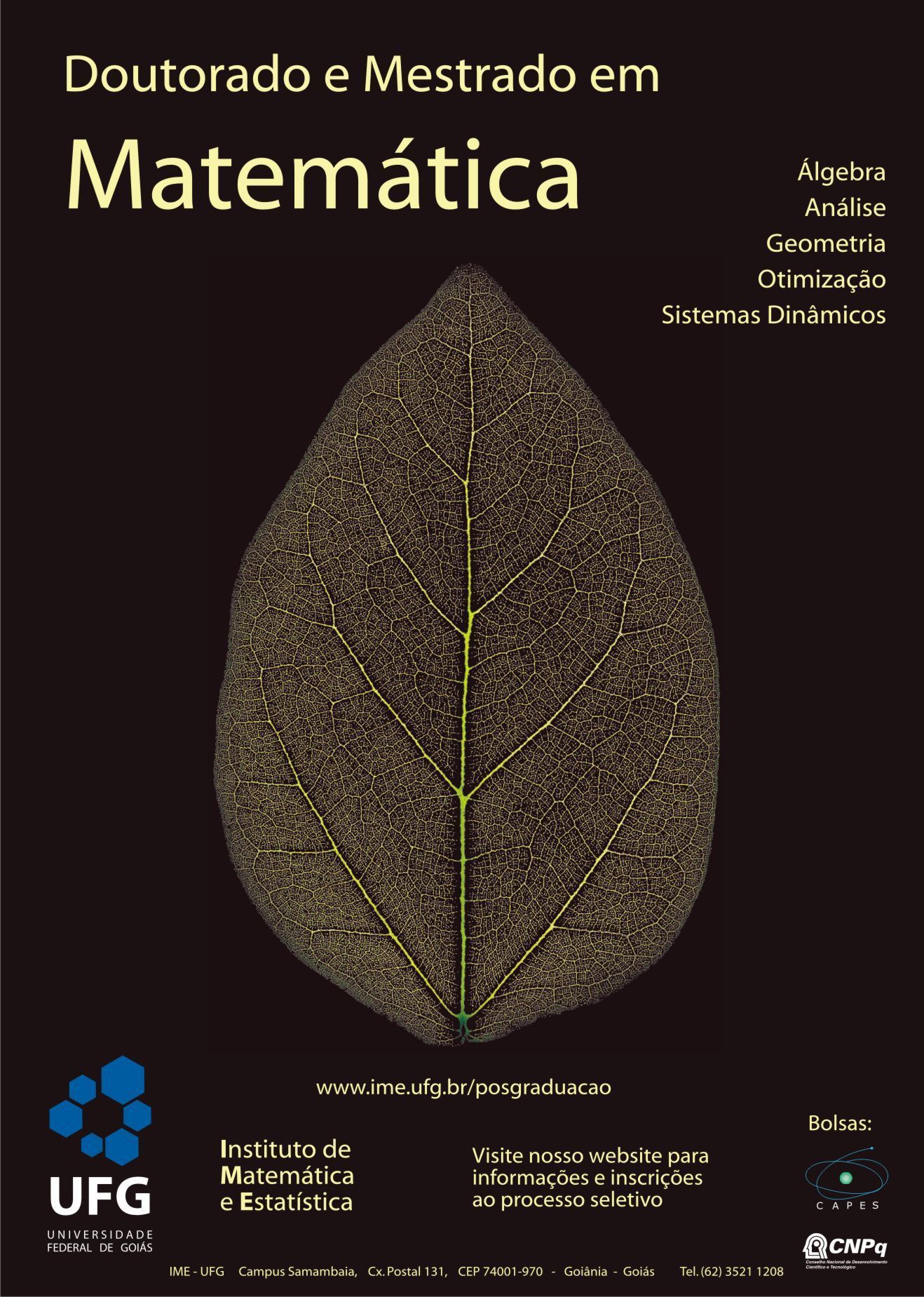 Informações: posgrad.ime.ufg@mat.ufg.br e tel. 62-3521-1137